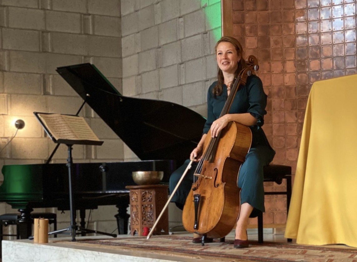 Evelien neemt je mee op reis met haar stem, cello en piano. Prachtige klanken waarbij je lekker kan wegdromen. Evelien is muziekdocente op het Mare college in Leiden en geeft al jaren Latifa meditatie in de tempel en ligconcerten met pianist Jeroen van Veen.